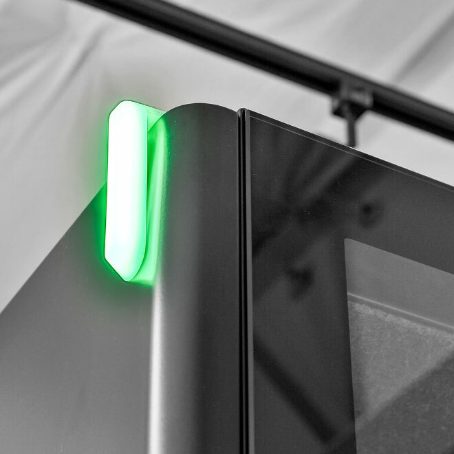 Cove Office Pods provide even more privacy with comfortable, enclosed, soundproof workspaces with integrated airflow, lighting, and power. Place them around the office for quick phone calls, private one-on-one meetings, or engaging group huddles.