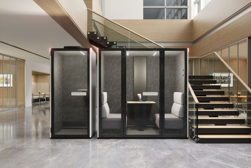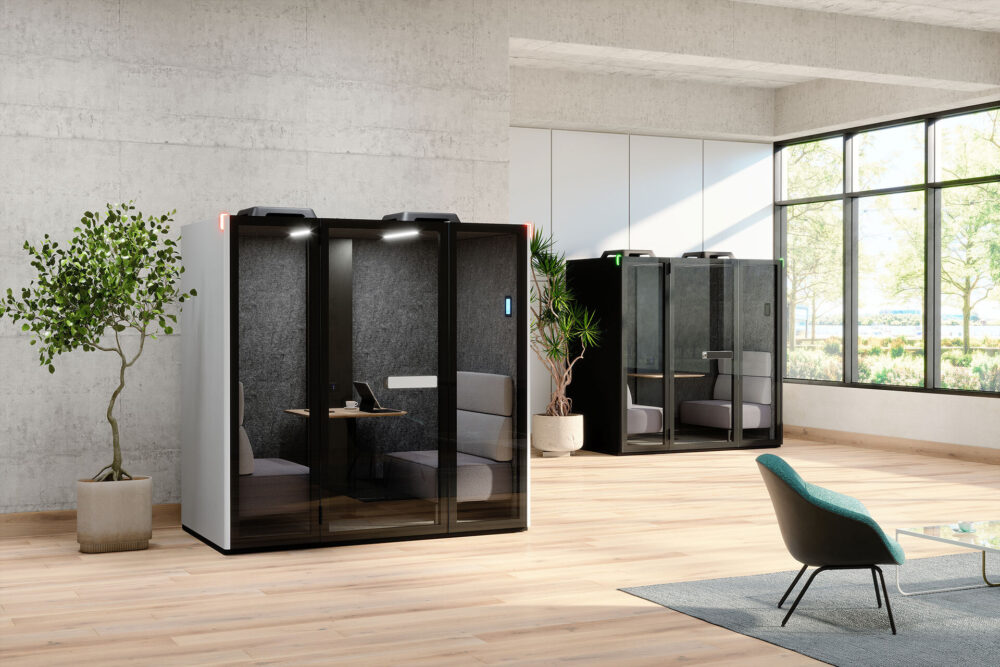 - Available in 4 sizes: Essential, Focus Pod, Meeting Pod, and Room Pod